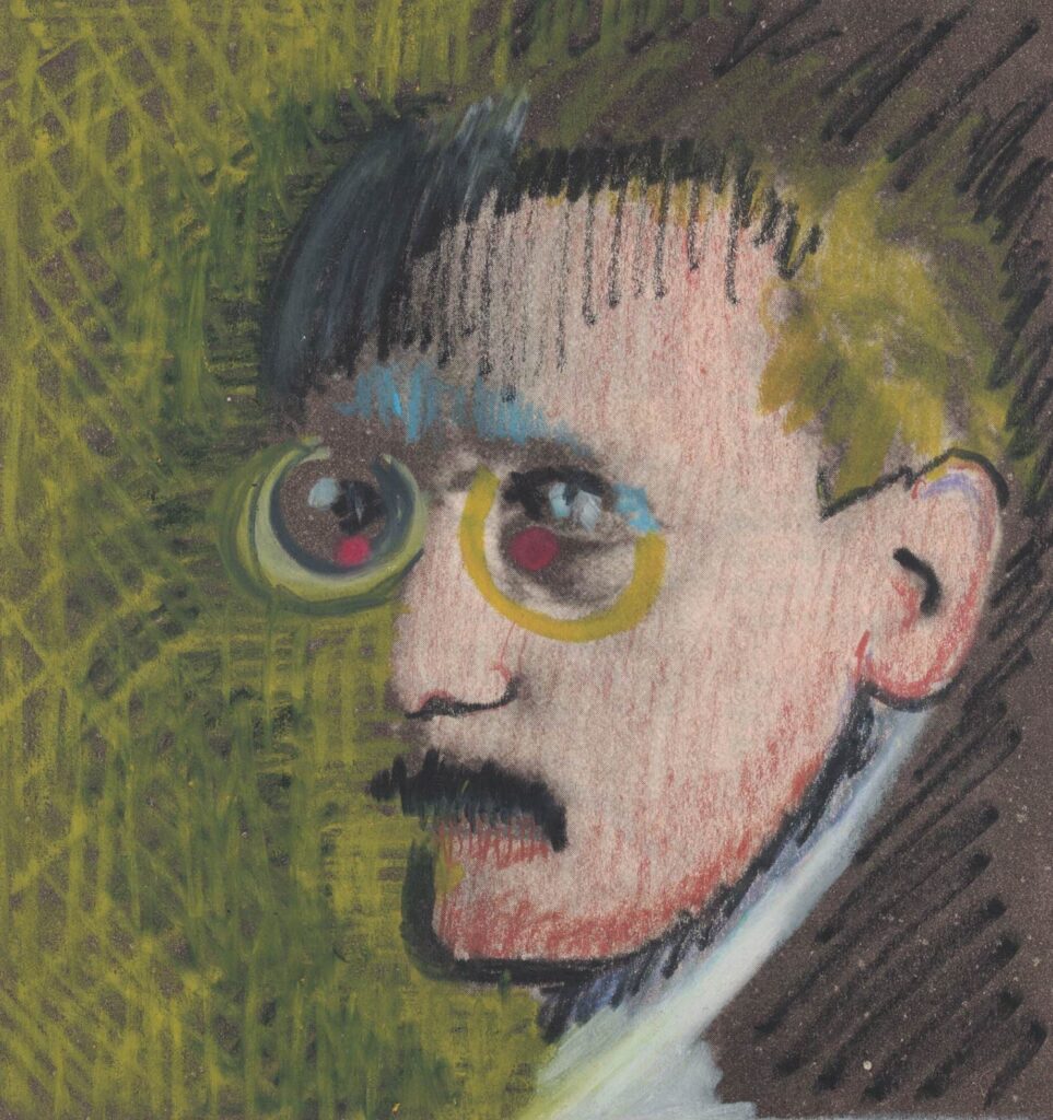 Retrato de James Joyce Ano: 1997 Técnica: Mista sobre papel jornal Dimensões: 17.2 x 16cm