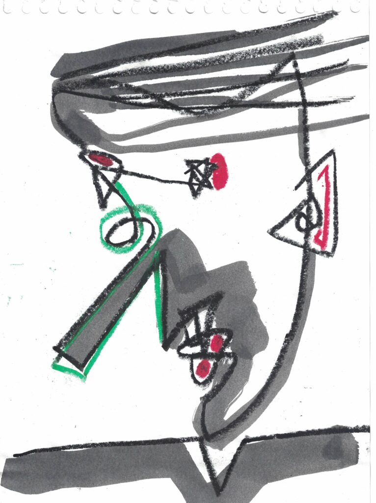 Retrato IV – O homem esse estranho Ano: 2023 Técnica: Acrilica e nanquim sobre papel canson, 300g Dimensões: 2.97 x 2.10 cm