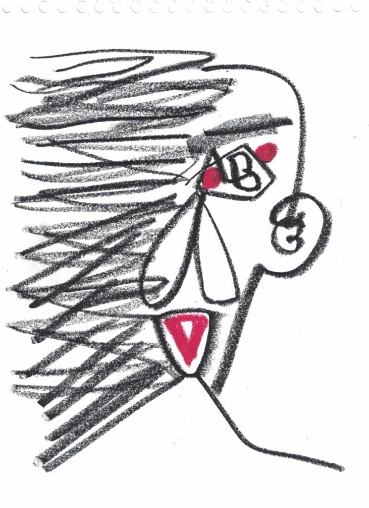 Retrato V – Retrato de Jorge Luis Borges Ano: 2023 Técnica: Acrilica e nanquim sobre papel canson, 300g Dimensões: 2.97 x 2.10 cm