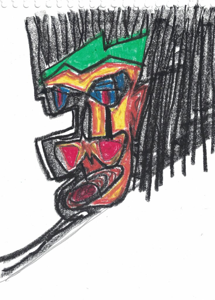 Cabeça XXIII Ano: 2022 Técnica: pastel óleo sobre papel sulfite, sketchbook Dimensões: 275x195cm