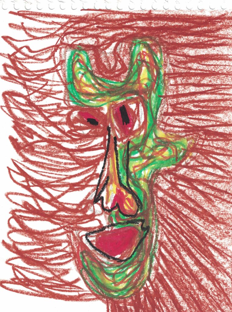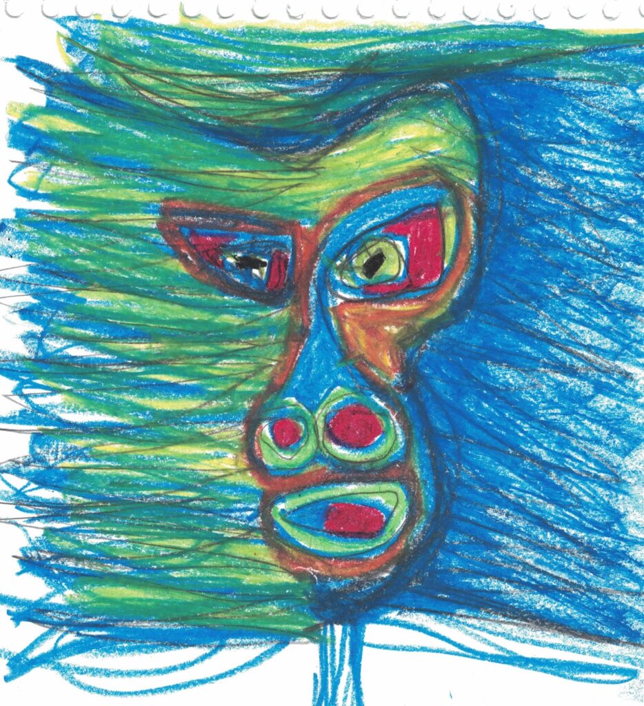 Cabeça XXVII Ano: 2022 Técnica: Pastel óleo sobre papel sulfite, sketchbook Dimensões: 27.5 x 19.5 cm